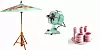 ROMANTIKK I LUFTEN: Håndmalt parasoll i turkis, 2,20 m i høyden og 2 m i diameter, ca. kr 1800, rice.dk, retro bordvifte, kr 1095, lunehjem.no, og Multivase designet av Anne Langhøj, fra kr 500- 1220, retrovilla.dk.FOTO: Produsentene
