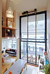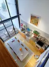 Med det samme du åpner inngangsdøren, blir du grepet av leilighetens oppsiktsvekkende, luftige atmosfære. Det åpne gangpartiet leder naturlig inn mot den imponerende, 5,2 m høye glassfasaden, som åpner opp og lar dagslyset flomme uhindret inn i begge etasjer. Dette har inspirert beboerne til å legge sin sjel i innredningsarbeidene.