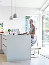 - Et rom med farger som harmonerer synes jeg er godt å være i. Farger som gir energi kan det gjerne være, da helst i små doser på deler av interiøret hvor de kan varieres, sier Mønnich og åpner opp skyvedøren og slipper sommeren inn.
