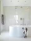 - Utallige gulvprøver ble med hjem før det endelige valget ble tatt. Det naturlige lyset er fascinerende, derfor ønsket vi også store vinduer og ekstra takhøyde så lyset får spille seg ut i rommene. Her får vi været rett i ryggmargen, spesielt på dager med skikkelig ruskevær. Herlig, sier hun.