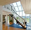 De gir beboerne mulighet til å velge om de vil nyte utsikten fra glassatriet i fronten på huset, eller sitte skjermet til siden for den himmelhøye glassfasaden mot sørvest. Med en så åpen grunnplan ble det også fin kontakt mellom etasjene og de ulike rommene på begge nivåer.