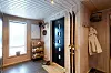 GANG MED GOD PLASS: Den nye entreen er romslig og praktisk innredet med flislagt gulv og store garderobeskap. Ytterdøren fra Swedoor har en moderne utforming som passer til den nye hyttekroppen. Den er bestilt ferdig sortmalt fra fabrikk i fargen S 9000-N. Både vegg- og takpanel er behandlet med hvitpigmentert beis.Inger Mette Meling