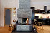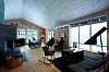 ETTER SISTE OMBYGGING: Fra entreen åpner det luftige allrommet seg. De store vinduene i gavlveggen gir en ekstra flott utsyn og understreker en ønsket tilknytning til den omkringliggende naturen. Peisen i skifer gir rommet karakter, men er allikevel utformet slik at den ikke opptar for mye plass.Inger Mette Meling