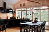 ETTER: Kjøkkensonen er åpen, romslig og sosial. De store vindusflatene i gavlveggen gir optimalt med lysinnslipp og utsyn til skogen utenfor. Innredningselementene er delvis gjenbrukt fra kjøkkenet som ble satt inn i gamle-hytta i 2006. Den mørke innredningen gir tøff kontrast til de hvit-pigmenterte veggene. Både innredning og benkeplate er fra Ikea.Inger Mette Meling