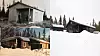 FØR OG ETTER: Til venstre øverst er hytta slik den ble bygget i 1963, nederst til venstre i 1976 og til høyre etter ombygging i 2008, med badeannekset ved siden av.Privat
