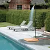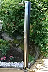 kobles til hageslange, og vannet varmes opp via soloppvarming. Når dusjen, som rommer 20 liter vann, blir varmet opp av sola, kan vanntemperaturen komme opp i mer enn 60 grader. Det varme vannet blandes i ønsket temperatur ved hjelp av en kran på dusjstangen. 1990 kroner, sunwind.no. Med Serpentine utedusj (til høyre) kan du bare plugge til hageslangen, så har du en stilig dusj ute i det fri. 3744 kroner, hipvilla.comFOTO: Produsentene