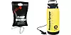 SOLVARME: Dusjposens svarte overflate absorberer solas varmestråler og varmer opp vannet. Dusjen har en kapasitet på 20 liter. 160 kroner, sunwind.no. Trykkpumpedusjen (til høyre) består av en beholder hvor det fylles temperert vann, og med noen enkle grep pumper du opp et trykk i beholderen og får en dusj. Det medfølger vanlig dusjhode som kobles til. 890 kroner, sunwind.noFOTO: Produsentene