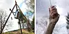 Denne konstruksjonen er helt på Flintstone-nivå. Fyll en hagekanne med varmt vann, fest en snor i tuten. Heis opp kannen og dra i snora. Du kan henge den i et tre eller lage et trebent stativ av staur, slik vi har gjort i eksempelet du ser under.