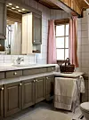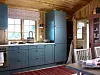 Fargene på møbler og kjøkken har de fått tilpasset på stedet, med hjelp av en malermester. Familien er godt fornøyd med innsatsen de har lagt ned, og det med rette. Hytta preges av harmoni og helhet, rommene er innbydende og det er en god flyt mellom den gamle og den nye delen.
