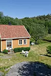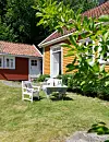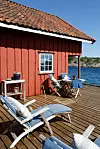 Hytta ligger fint til en rusletur inn på den frodige øya, i skjærgården vest for Kristiansand.