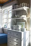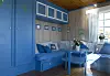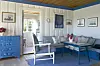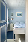 Datteren Tina samlet tidlig på skjell og ting fra fjæra og laget smykker av dem, og som voksen er hun blitt smykkedesigner på heltid. Nina har sansen for interiør - det er tydelig at her bor en dame med øyne for farger og stemning. Stilen er samkjørt og harmonisk, malt i blått og hvitt, med friske tekstiler med innslag av rødt. Det er maritimt og samtidig romantisk.