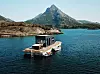 Med andre ord, ingenting er gjort på slump. Materialvalget henspiller til tidligere tider, hvor det ofte ble brukt solid furu- tømmer når naust skulle bygges. Alle møblene er tegnet av arkitekten og bygget på stedet av en lokal snekker. Materialet er Valchromat, som er et bestandig og vedlikeholdsfritt trefiber-panel som gjerne blir brukt i spesialinnredninger.