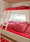 Smarte soverom: Gjestesoverommene er bare akkurat så store som de må være for å gi plass til en dobbeltseng på 140 cm med én køye over.Foto: Sveinung Bråthen