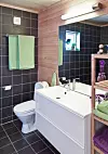 - Planløsningen er kanskje ikke revolusjonerende, men jeg opplever den som arealeffektiv og praktisk, sier Asbjørn. Totalt er det tre soverom, pluss hems og bad, badstue og vaskerom. En sportsbod har de også fått plass til innenfor arealet på 75 kvadratmeter.