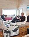 Koseplassen: Hytteeier Trine Sjøblom er glad i å lese bøker. Dagsengen kan også benyttes som soveplass dersom hele storfamilien skulle komme på besøk.Foto: Sveinung Bråthen