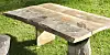 7. Bordet er ferdig! Puss lett over bordplaten med sandpapir for å jevne ut overflaten. Når du kutter villmarkspanelet i lengden, og stubben i to, vil du få en lysere overflate på disse endene. Bruk olje eller beis for å få tilsvarende farge som på resten av bordplaten.