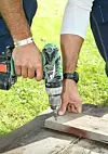 3. Legg de tre panelbordene inntil hverandre, opp ned. Fest dem til hverandre med to tverrgående trestykker, som skrues opp fra undersiden av bordet.