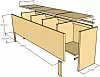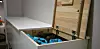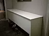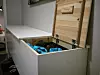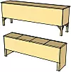 Han har brukt vanlige heltre hobbyplater. Benken er hvitmalt med avrundede kanter. Stilen kan enkelt tilpasses med rette kanter, forskjellige typer ben og ulike overflatebehandlinger. Vil du at benken skal ha luftsirkulasjon, kan du legge langsgående lekter i bunnen av kassen og lage en luftespalte mellom lokket og fronten.