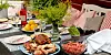 Uteplassen er enkel og eierne henger gjerne opp solseilet for å skape en trivelig skyggefull ramme om måltidet. Når gjester kommer på besøk kan de synke ned i myke puter i benken, og nyte sommerkveldens lys og dufter.