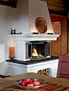 En lav, tett og intim formasjon av syv små og store huskropper, alle bygget i tradisjonell tømmerstil. Inne domineres hytta av den åpne og luftige tømmerstua, møblert med komfortable sofaer foran peisen og vakre antikviteter. Store vinduer åpner for den spektakulære utsikten.