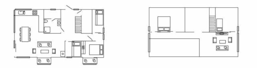 Selv om hytta er kompakt og svært arealeffektiv, virker den likevel lys og luftig. Det er takket være store vinduer og at det er åpent helt opp mot taket over stua.
