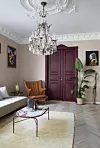 FREMHEV: Maling er en unik måte å fremheve flotte dører, listverk eller andre detaljer på. Samtidig er det med på å gjøre boligen spesiell. Disse gamle fløydørene er restaurert og malt i fargen Merlot FR1174 fra Fargerike. Lenestolen Bamsestolen av Hans J. Wegner fra 1951, er i produksjon hos PP Møbler.Filippa Tredal
