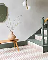 KREATIV FLISEBRUK: Tenk alternativ flisebruk. I denne boligen får flisene på gulvet fortsette oppover trappen for et helhetlig uttrykk. Håndlaget flis Terracotta Gammon Encaustic Cement Tile, 20 x 20 cm, ca. kr 1240, ottotiles.co.uk.Produsentene