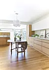 - Rommet dekker mange behov, det er her vi lager og serverer mat, men det er også det rommet hvor vi er mest sosiale. Jeg synes rom som det er folk i, er de beste rommene. Vi liker å samle familie og gjester. Det gamle bordet som jeg har plassert midt på gulvet står egentlig litt i veien, men det fungerer som en effektiv rundkjøring i hverdagen, sier Robinson.