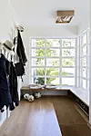 - Jeg føler at spiseplassen på kjøkkenet er litt stue også. Den lange benken er behagelig å sitte i, den har plass til mange og benken minner om en sofa. Kjøkkenbordet er stort nok til at flere kan sitte med sine prosjekter samtidig. Komfort er viktig på dette rommet, og etter middagen blir familien gjerne sittende lenge. Her har både godstolen og tv-en fått sine plasser.