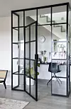 Under trappen ligger Cathrines hjemmekontor. – Jeg hadde tidlig en idé om hva dette området skulle brukes til, sier hun. Glassveggene gir hele stuen et særpreg, noe hun er godt fornøyd med. Den skreddersydde løsningen er laget av Stiil. Skrivebordet er fra Ikea og stolen fra Jotex.