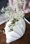 Cathrines skjellformede vase fra ByOn passer perfekt til den delikate buketten med brudeslør.