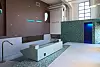 Likevel får man følelsen av å være i lyse, luftige lokaler når man beveger seg her inne. Blant prosjektets mange virkemidler, er det ett som skiller seg ut: Endeveggen består nemlig av en bakbelyst duk som gir en illusjon av dagslys og følelse av rom.