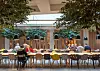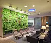 I loungeområdene finner du blant annet en selvvannende plantevegg, i resepsjonsområdet en stilisert eikeskog, og spisebordene befinner seg i en alle av løvtrær.