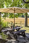 SITTEPLASS: Ute i hagen har paret flere herlige sitteplasser.Lise M. Stang-Jacobsen,