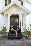 INNGANGSPARTI: Jentene er veldig glad i det vakre inngangspartiet til huset. De falt også for grunnmuren da de var her på visning.Lise M. Stang-Jacobsen,