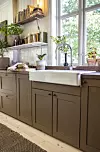 MALTE KJØKKENFRONTER: Frontene på kjøkkenet er malt i en lun farge som paret selv har blandet seg fram til.Lise M. Stang-Jacobsen,