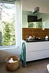 Materialene er i stor grad vedlikeholdsfrie, i hovedsak sibirsk lerk ute og eik innvendig. Utnyttelsen av plassen ble høyt prioritert under ombyggingen.