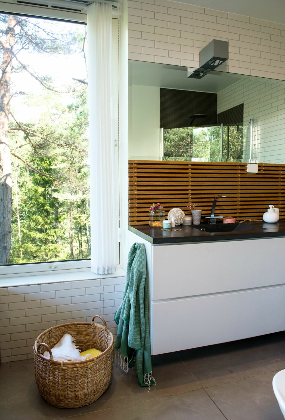 - Det første vi ser fra sengen om morgenen er sjøen. Skyvedørene i glass ut mot morgensol og uteplass for frokosten er uvurderlig. Vi har fått nærhet til naturen både på grunn av vindusflatene og de ulike nivåene inne og ute.