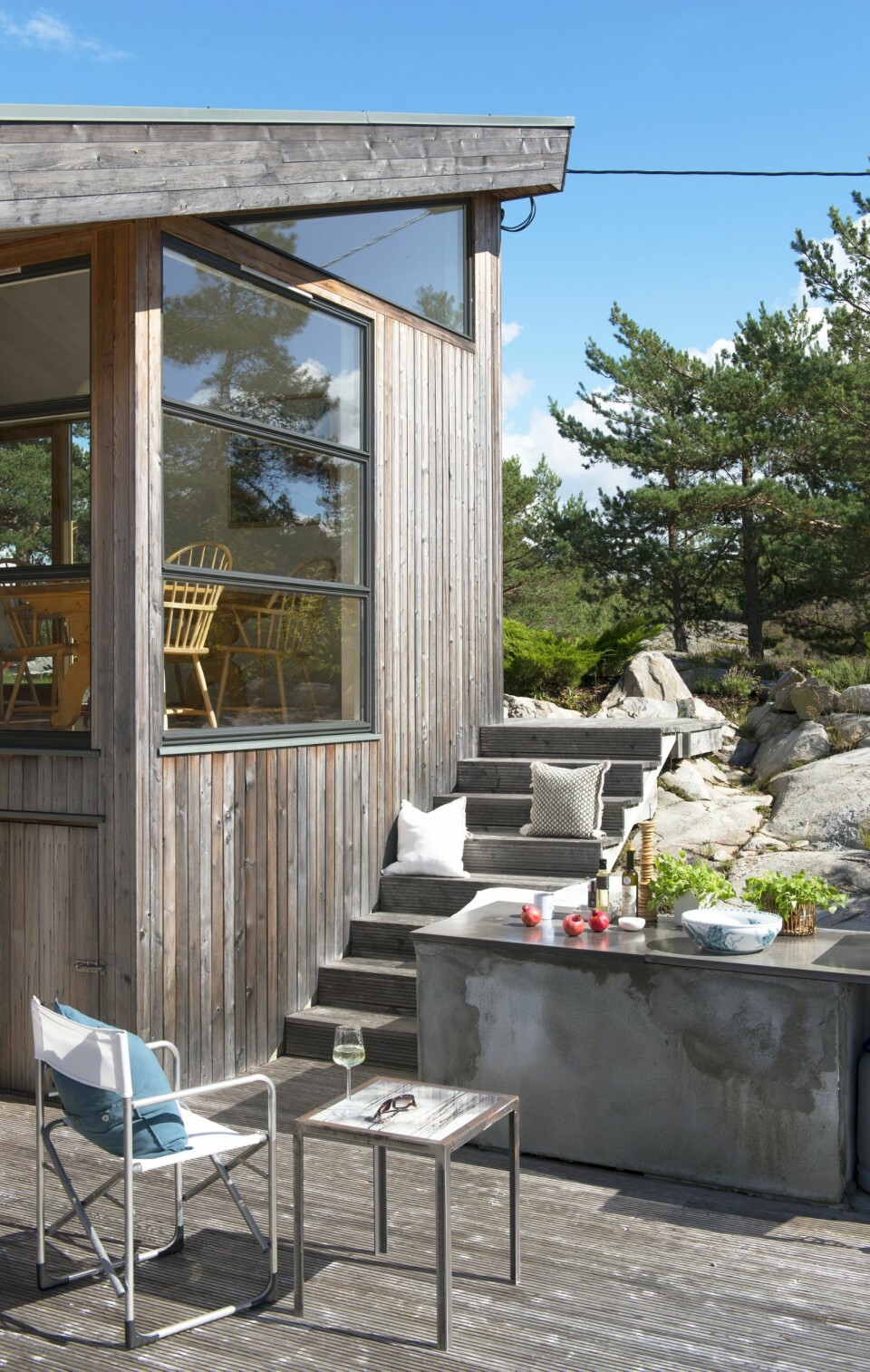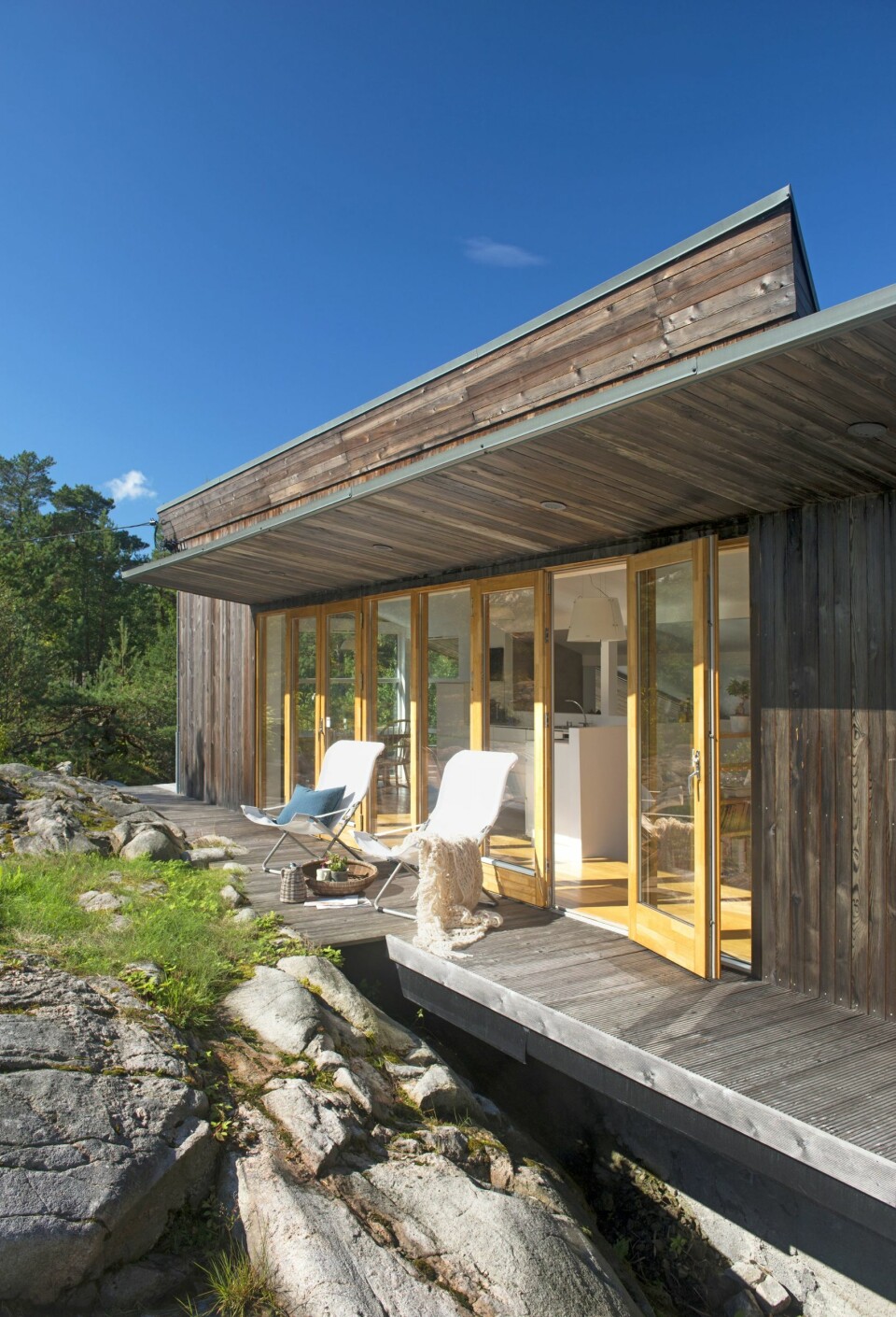 På midten av 1970-tallet ble det bygd en hytte på en tomt med fantastisk sjøutsikt på Grimsøy. Førti år senere arvet Øyvind Ertzaas hytta av sine foreldre. Men det idylliske sommerstedet var etter hvert blitt nedslitt og trengte et skikkelig løft. Dessuten ville Øyvind og kona Sigrid K.G. Ertzaas ha et strammere uttrykk, i tillegg ville de få bedre utsikt mot sjøen, og nyte solen enda mer.