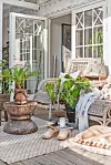 Når en gjenstand først har vunnet hjertet hennes, får den som regel bli. Lenge. Hvis den ikke får plass inne, kan det være at den havner på terrassen. Om sommeren innreder hun nemlig den rause uteplassen med gardiner, puter, tepper, pynteting og møbler som er gode å sitte i. Hun trenger ikke gå langt for å finne inspirasjon til uterommet.
