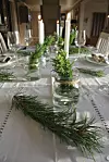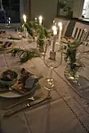 Knalvåg anbefaler å gå for en hvit linduk, masse lys, samt grankvister satt sammen i gamle syltetøyglass.