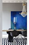 Aller viktigst for paret er likevel at hjemmet deres skal være sosialt og innbydende. Den første felles sammenkomsten i leiligheten var på 17. mai i 2014, klokken halv syv den morgenen ble siste skrue skrudd på kjøkkenet. Og når vennene samles rundt spisestuebordet som Holte selv har designet og laget hjemme på gården han er fra, er det lov å søle, noe som har gitt bordet en naturlig patina.