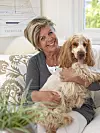Hampus er en Cocker Spaniel som fyker rundt i huset eller krøller seg avslappet i en stol. Derfor har møblet utskiftbare og vaskbare trekk.