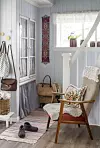 Familien Bjerga bodde i et boligfelt et stykke unna da de så at huset, som en gang hadde vært i Sissels familie, var lagt ut for salg. De hadde lenge drømt om et landlig liv med en stor usjenert hage, og kunne ikke la denne sjansen gå fra seg. Og det var med stor glede at de la inn det avgjørende budet. De kastet seg inn i oppussingsprosessen med én gang og begynte å rive ned eternittplater og etterisolere. De fikk også fram de flotte, gamle tregulvene og malte dem hvite. Bjerga syns det er veldig sjarmerende med gammeldagse tapeter og har brukt det i flere rom. De har også byttet tak og bygd om to kvister.