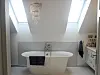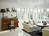 I første etasje er det klassisk hvitt men svarte elementer som går igjen, som en rød tråd. Detaljene er i grått, rosa og lilla.