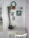 Huset er en blanding av stramt, nordisk murhus og koselig, norskt trehus. Vi liker begge deler, og prøvde oss på en kombinasjon. Det ble en spennende utfordring, og vi har prøvd å gjennomføre den inne også, gjennom klassisk nostalgi og moderne stramhet. Jeg er blomsterdekoratør, og har veldig sans for små detaljer, som friske blomster i små vaser.