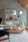 Trass i beskjeden grunnflate, rommer huset en åpen og stilig stue på ca. 70 kvm som strekker seg over nesten hele boligarealet i hovedetasjen.