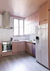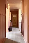 Neste rom ut, etter den nå terrakottafargede korridoren, var kjøkkenet som har stor åpning ut mot korridoren.