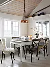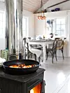 Innvendig var hytta fra 80-tallet mindre imponerende da de tok over. At den var så upersonlig etter å ha blitt leid ut til jaktlag i flere år, passet dem imidlertid godt. Dermed var det fritt frem for å sette sitt eget preg på den. I annekset har de for eksempel plassert en 100 år gammel kommode, som kommer godt frem mot det ellers så enkle og stilrene.