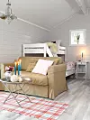 Siden hytta ikke er så stor, er det praktisk med en egen hems for barna på 10 og 13 år.